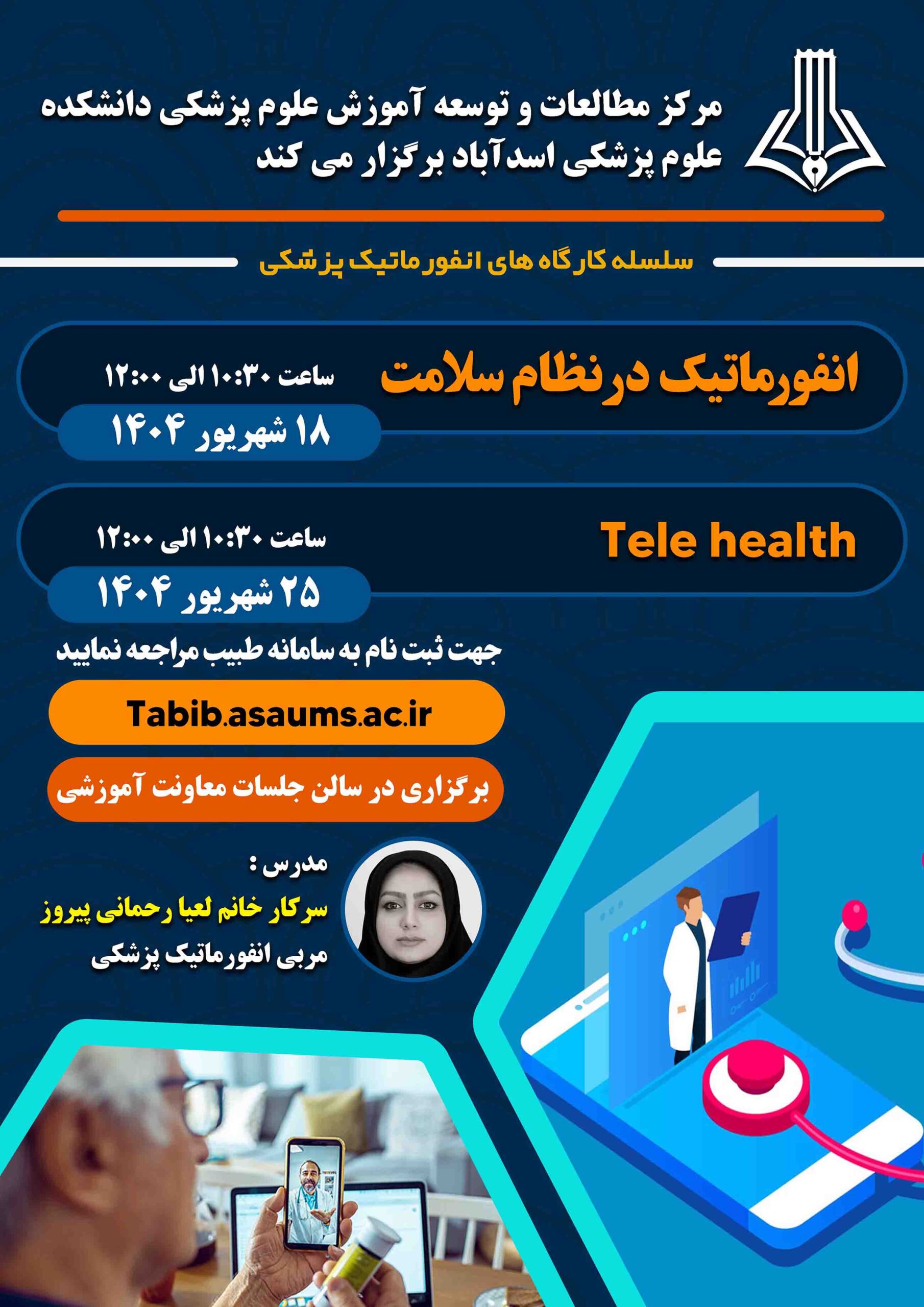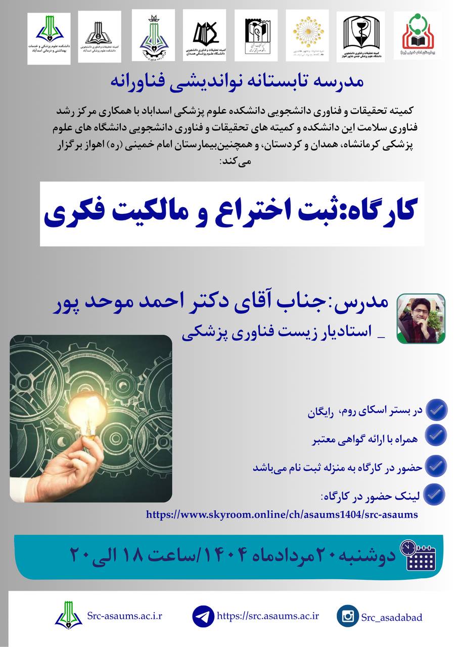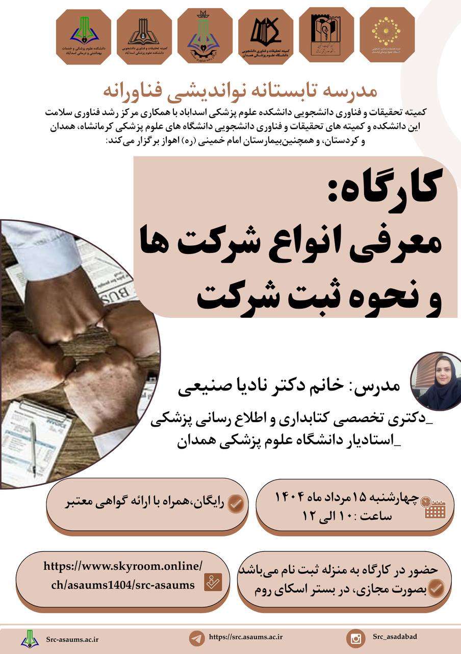 معاونت آموزش، تحقیقات و فناوری دانشکده علوم پزشکی اسدآباد برگزار میکند: کارگاه آشنایی با طرحهای تحقیقاتی اثرگذار زمان برگزاری: 31/6/1404 ساعت برگزاری: 13-11 مدرس: سرکار خانم دکتر ویدا قاسمی استادیار بهداشت باروری گروه هدف: اعضای محترم هیأت علمی محل برگزاری: کلاس1 معاونت آموزشی