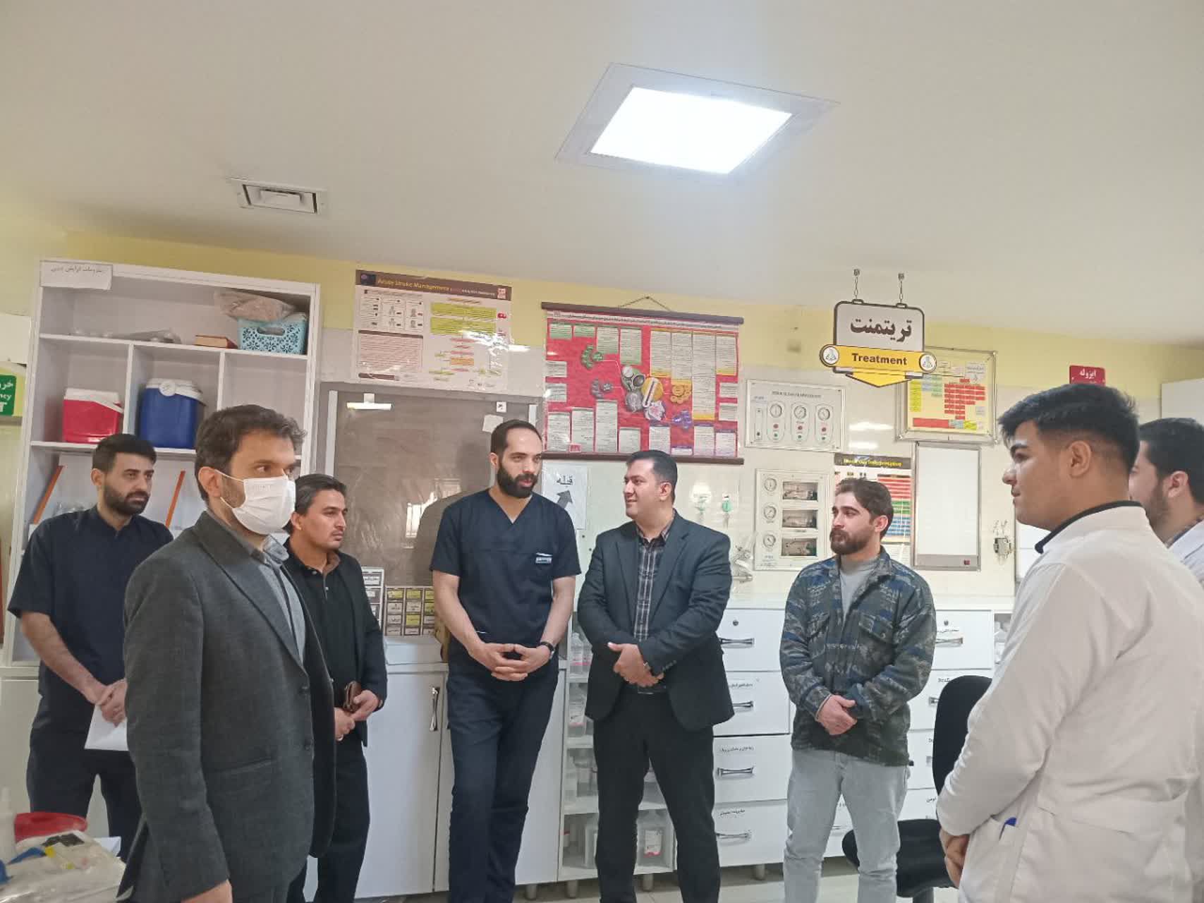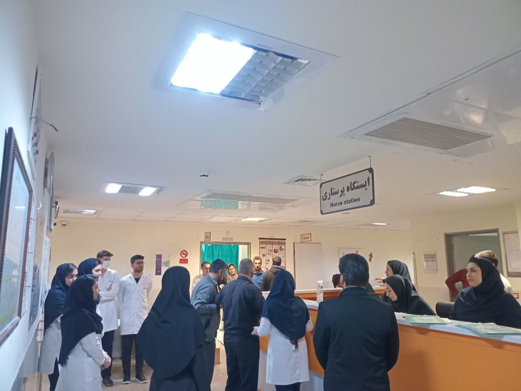 جناب آقای دکتر رامین لطفی ریاست بیمارستان، آقای ناوخاصی مدیر آموزش و تحقیقات و مدیر گروه فوریت های پزشکی، آقای بشیری مدیر دفتر پرستاری دانشکده و خانم رستمی معاون آموزشی بیمارستان و مدیر گروه پرستاری از دوره های مختلف کارآموزی و کارآموزی در عرصه در حال برگزاری در بخش های مختلف بیمارستان حضرت قائم (عج) بازدید به عمل آوردند؛