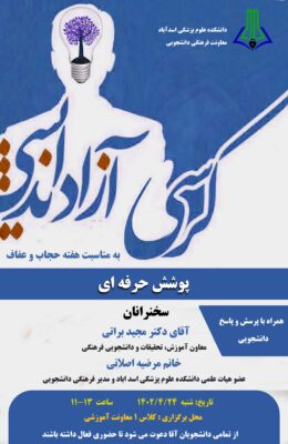 محل برگزاری : کلاس ۱ معاونت آموزش دانشکده علوم پزشکی اسدآباد